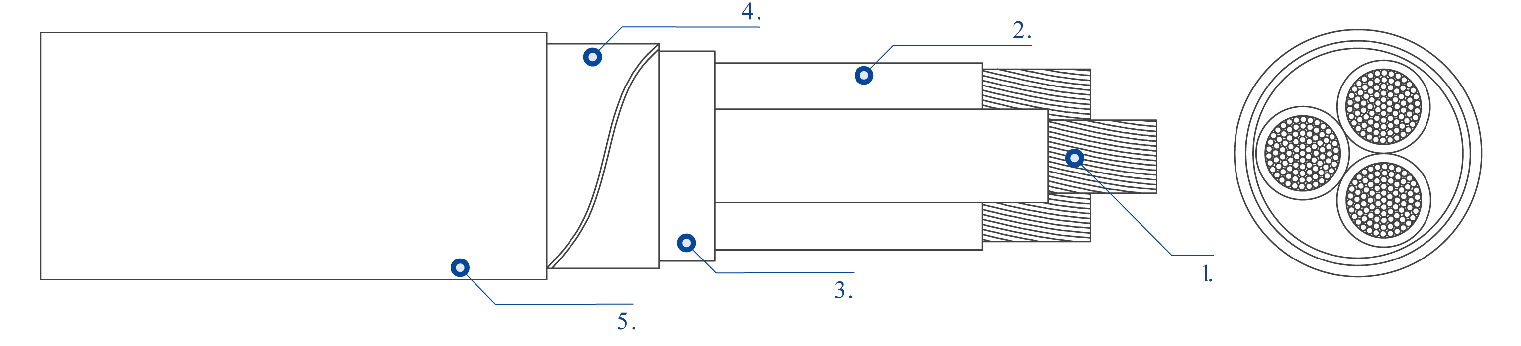 雙鍍鋅鋼帶或鋁帶鎧裝。 鋁制鎧裝用于單芯電纜,以避免可能使電纜過熱的寄生電流。鍍鋅鋼帶用于多芯電纜。
