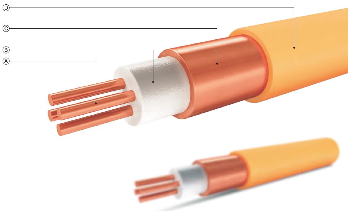 由于其用材和結構的特殊性,決定了該產品具有有機電纜(塑料電纜)所無法比擬的電氣性能、機械性能、耐環(huán)境性能和環(huán)保性能。這種獨特的結構使導體和絕緣材料的熔點分別為1083°C和2800°C。這使電纜在火災條件下,設備同時能夠繼續(xù)在超過1000℃的溫度下仍然安全地負載運行。