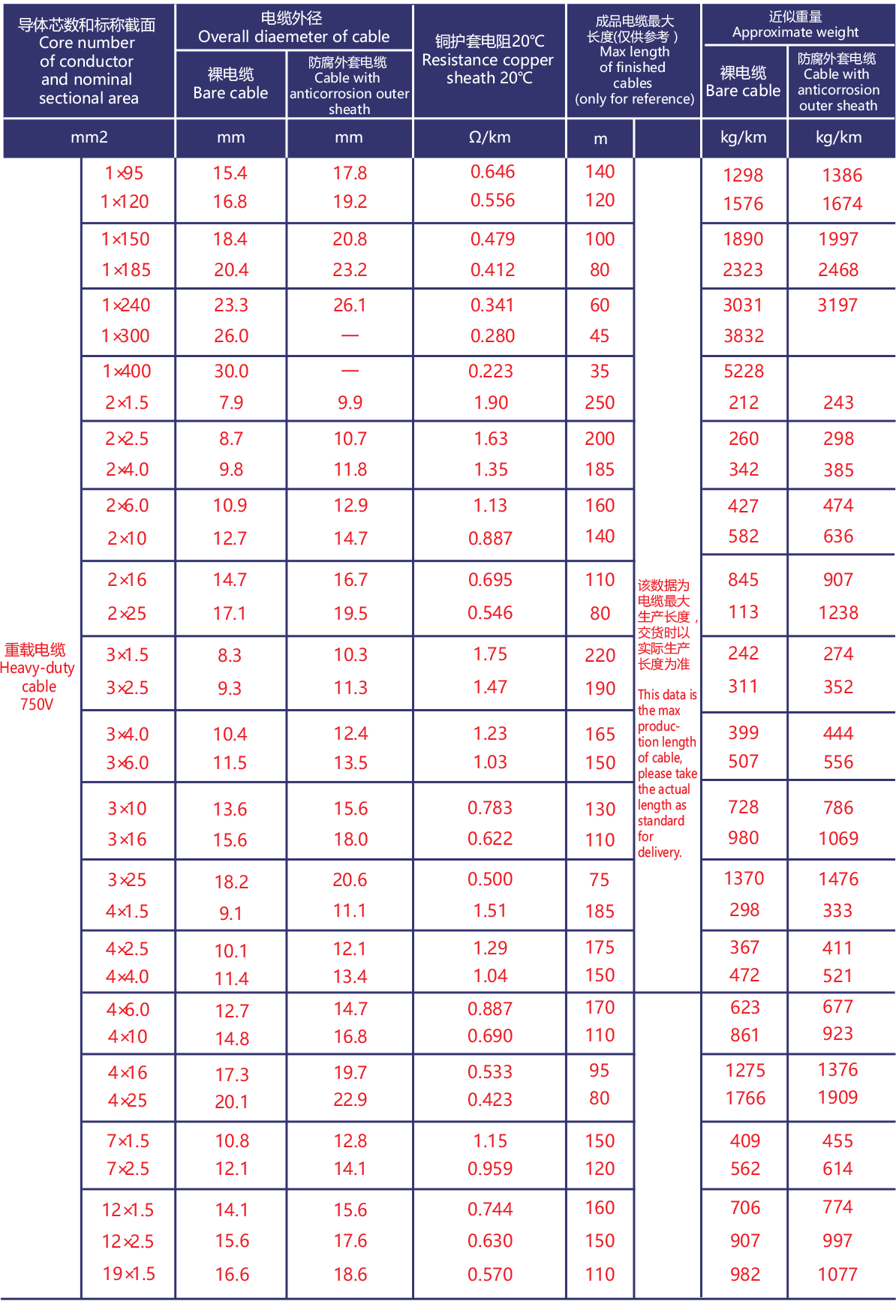 | BTTZ | 1.0~400mm2 | 1,2,3,4,7,12,19芯 | 750V |