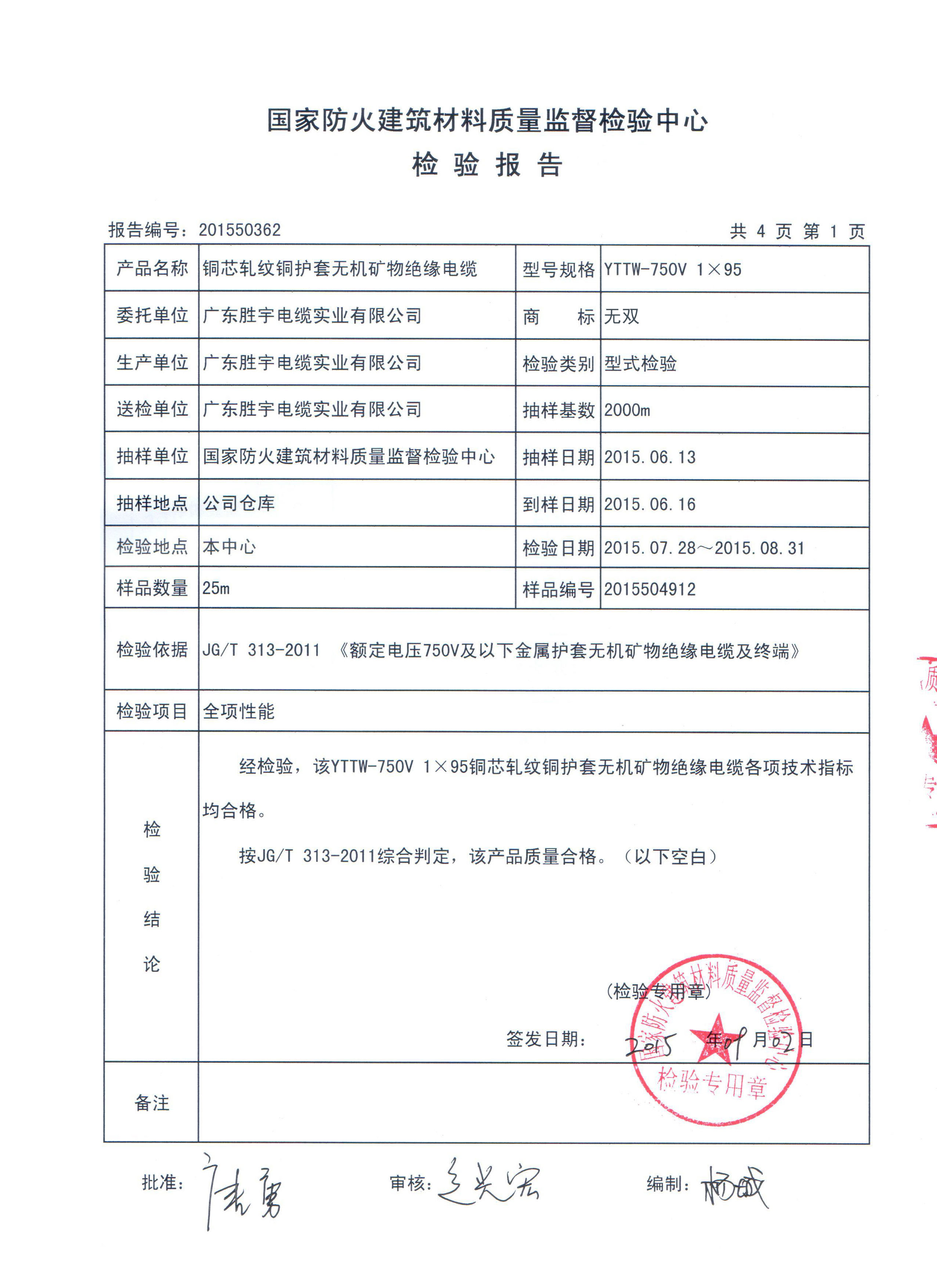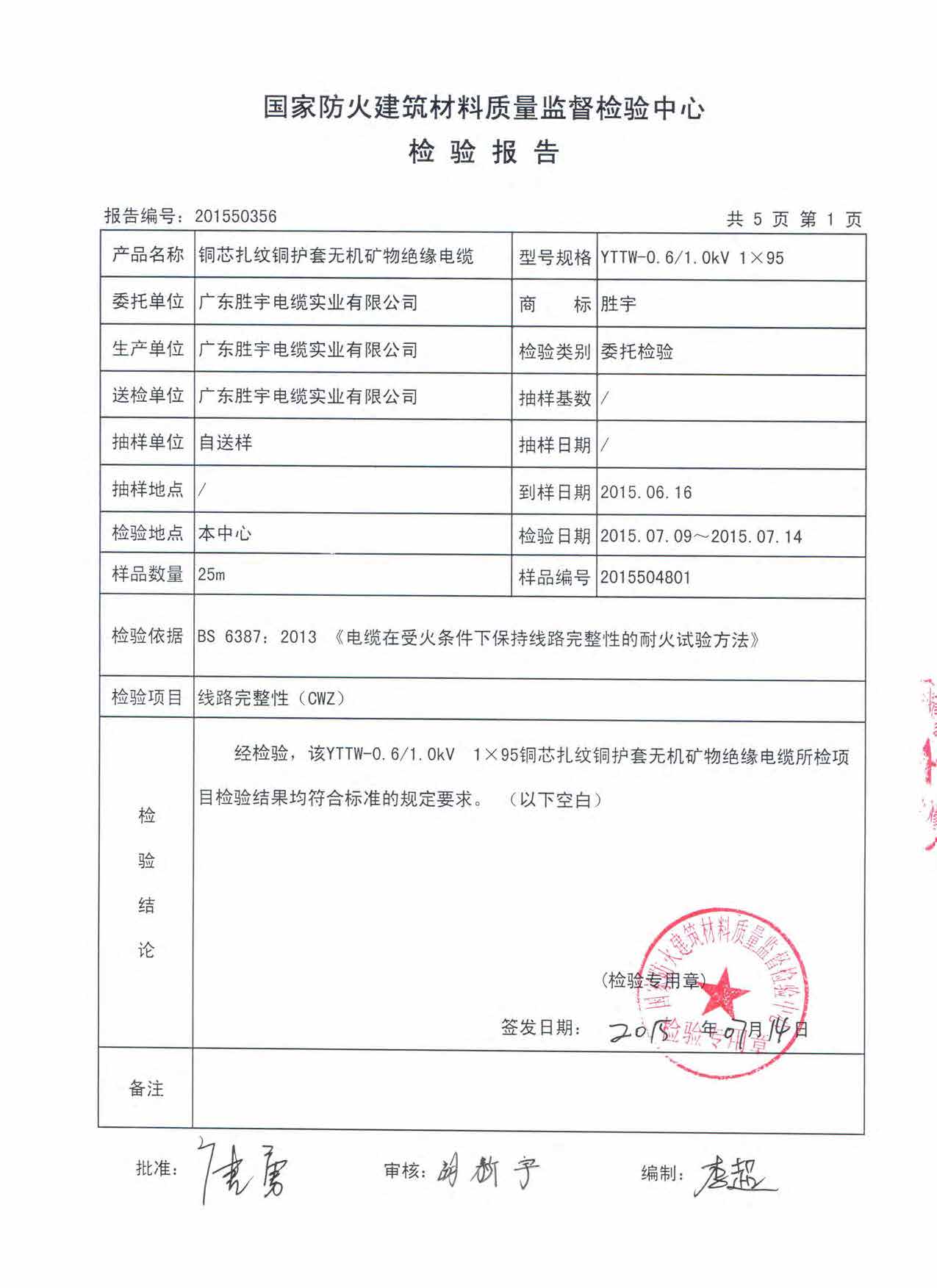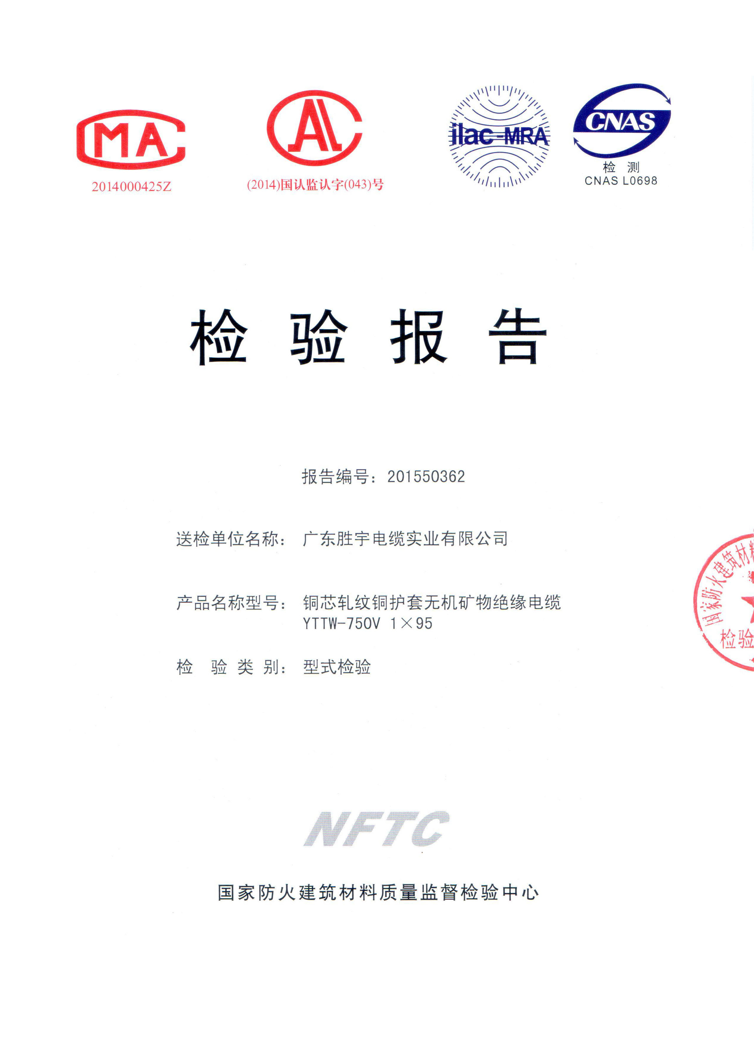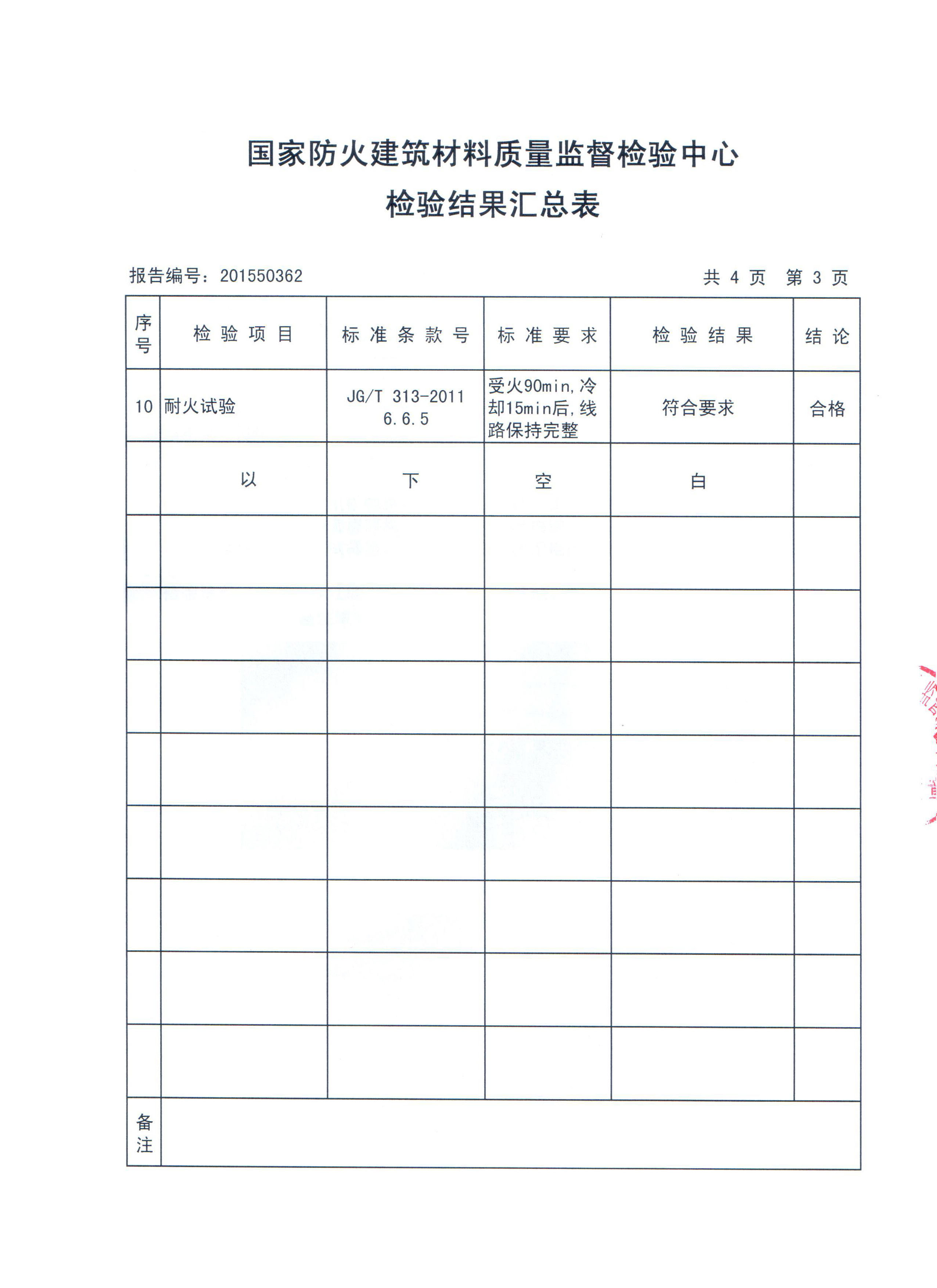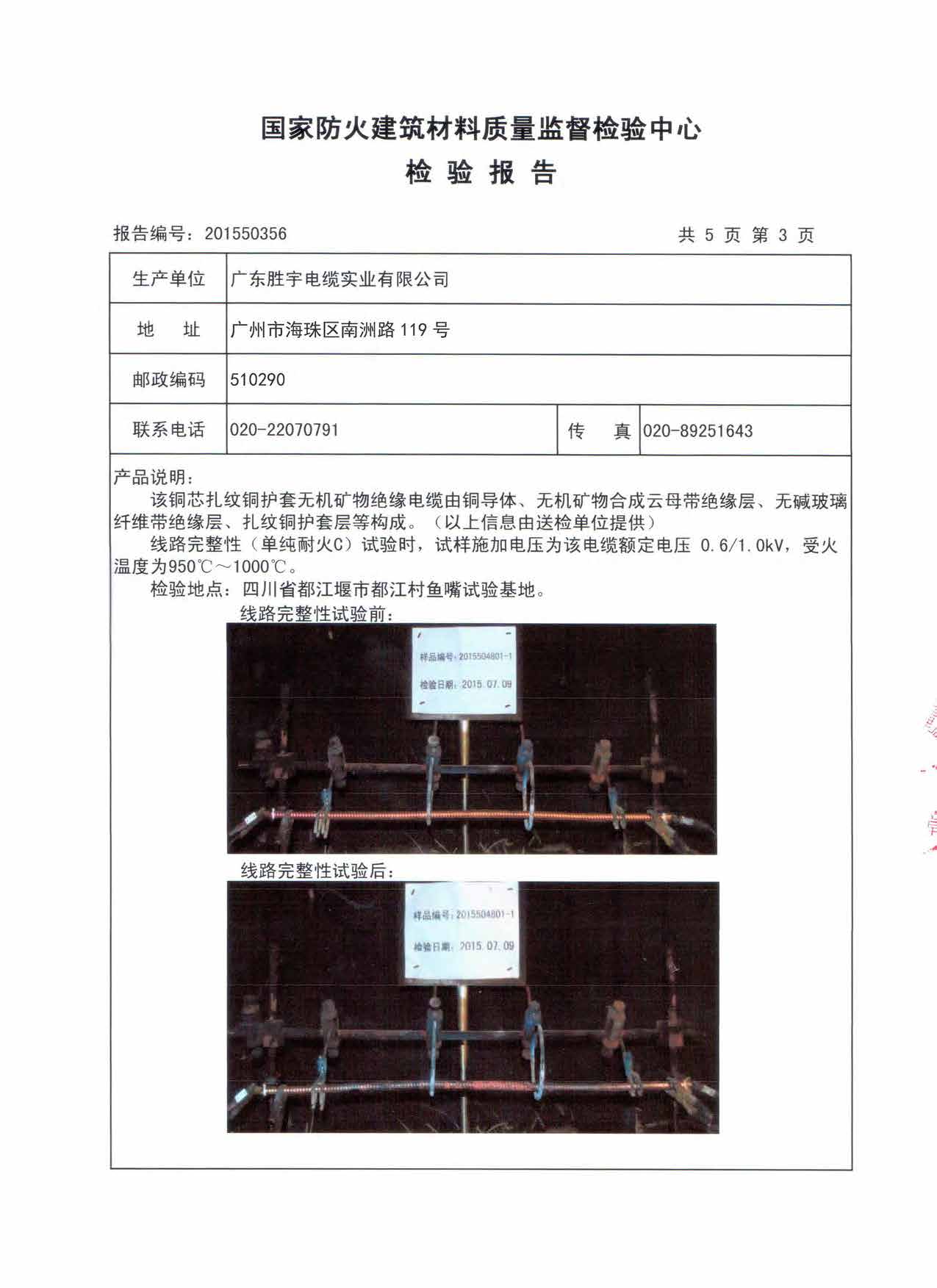 標(biāo)準(zhǔn)中的3個(gè)試驗(yàn),每做一個(gè)新實(shí)驗(yàn)都得換一個(gè)新的樣品,勝宇礦物絕緣電纜可以輕松遵守和承受最繁重的等級(jí)類別C、W、Z,甚至3個(gè)試驗(yàn)中整個(gè)過程中使用同一個(gè)電纜樣品不需更換。